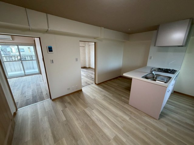 2DK+Sという間取りでしたが、SとDKをつなげ広々としたLDKにリフォームさせて頂きました。